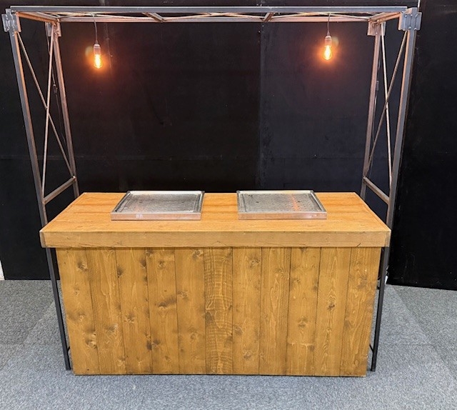 Deze Buffetkoeling industrieel is ideaal wanneer u snel een aantal gasten wilt voorzien van een drankje. Met deze buffetkoeling houdt u alle dranken lekker koel en kunt u direct het drinken uitschenken en aan uw gasten geven. Door de houten ombouw heeft de koeling de uitstraling van een robuuste bar. Deze buffetkoeling kunt u los huren of in combinatie met een tap, achterwanden,bovenrek, diverse meubels etc.in de de zelfde steil zie onze webshop voor meer info.