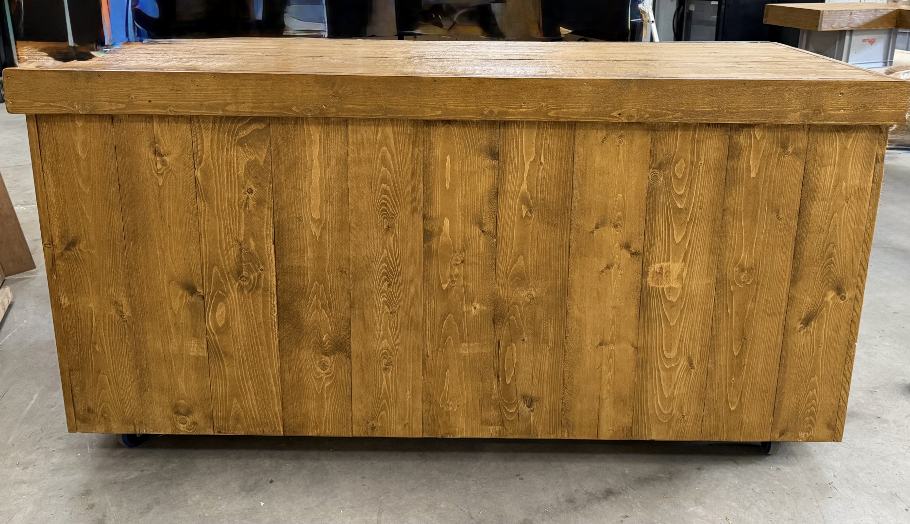 Deze Buffetkoeling industrieel is ideaal wanneer u snel een aantal gasten wilt voorzien van een drankje. Met deze buffetkoeling houdt u alle dranken lekker koel en kunt u direct het drinken uitschenken en aan uw gasten geven. Door de houten ombouw heeft de koeling de uitstraling van een robuuste bar. Deze buffetkoeling kunt u los huren of in combinatie met een tap, achterwanden,bovenrek, diverse meubels etc.in de de zelfde steil zie onze webshop voor meer info.
