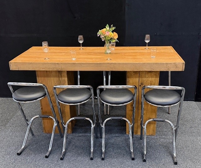 Mooie grote houten statafel licht eiken, gemaakt van sloop hout!